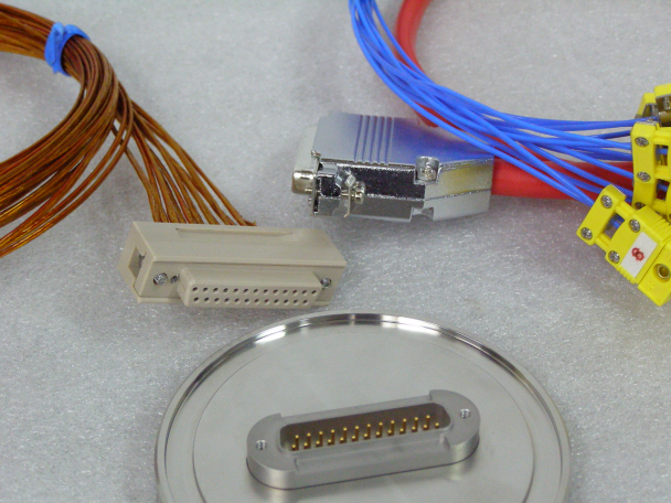 Vacuum side: 25 pins peek female D-sub with Kapton® insulation 9 pairs of K-type thermocouples ISO100 flange welded male D-sub feedthrough for vacuum application